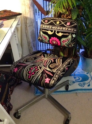 The best thing about it is a very good functional piece of furniture, ergonomic and well built, yet it has been upcycled with the most beautiful suzani embroidery that makes me oh so happy every time I look at it. It is a real work of art which I hope will last all my working life! I wouldn’t give it up for the world.