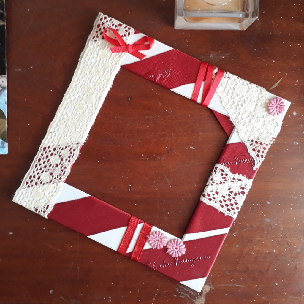 Mixed media collage of a small photo frame to enclose another collage from a Burda magazine.